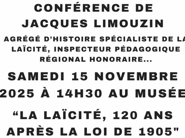 A l'occasion des 120 ans de la loi de 1905, le Musée du protestantisme de Ferrières accueillera Jacques Limouzin, agrégé d'histoire, pour une conférence intitulée "La laïcité, 120 ans après la loi de 1905", le samedi 15 novembre 2025 à 14h30.