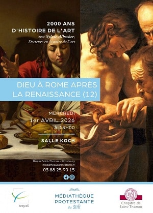 Le mercredi 1er avril à 18h aura lieu la conférence qui achèvera la présentation du parcours et de l’œuvre d’un premier représentant de l’après-Renaissance : Le Caravage (avec Sylvie Albecker, salle Koch, Médiathèque Protestante du Stift, Strasbourg).